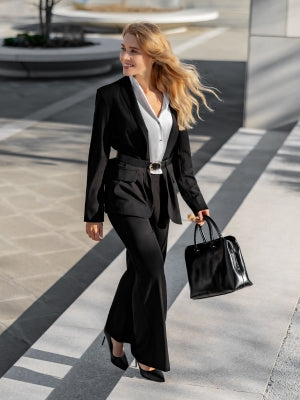 Pantaloni realizați din material moale și rafinat, cu crac larg și pliuri laterale